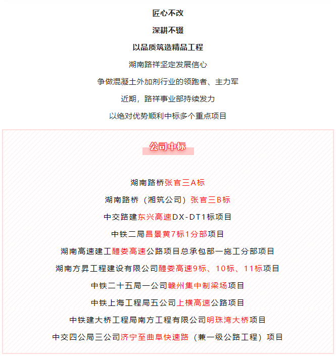 硬實力!湖南路祥砼外加劑市場中標大豐收!